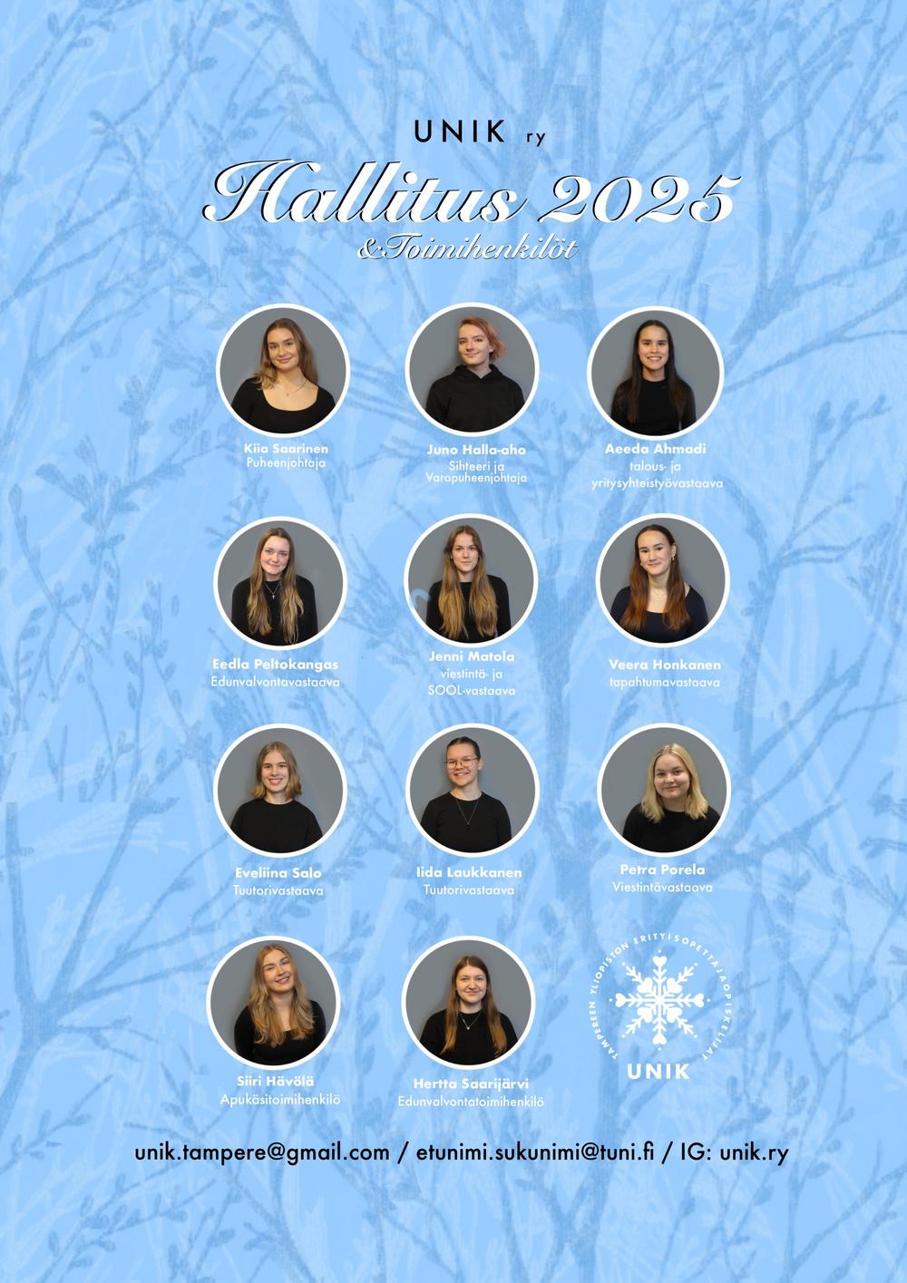 UNIK ry:n hallitus valitaan yhdeksi vuodeksi kerrallaan yhdistyksen syyskokouksessa. Hallitukseen voivat hakea kaikki jäsenemme. Hallituksen sähköposti unik-hallitus(a)lists.tuni.fi